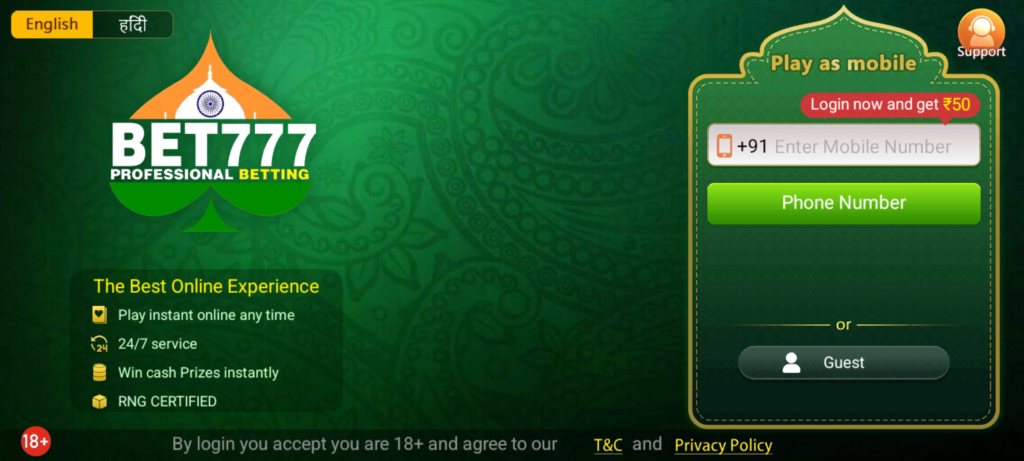 To login to Bet 777 apk, you have to verify your mobile number and OTP.